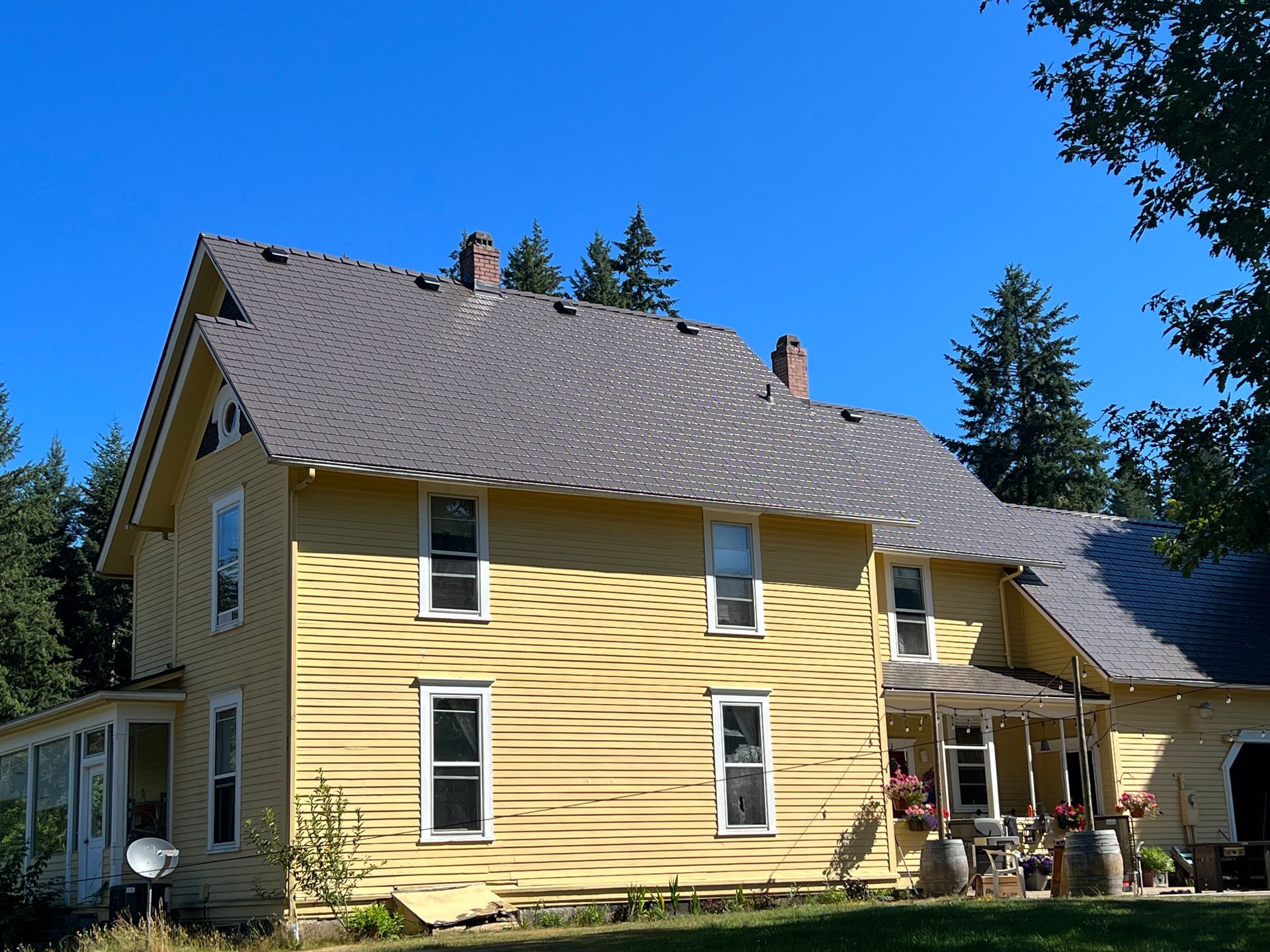 Longview, WA, 98632 🇺🇸 — Tudor Brown Interlock® Cedar Shingle + Black Interlock® Lifetime Metal Slate Roofing System